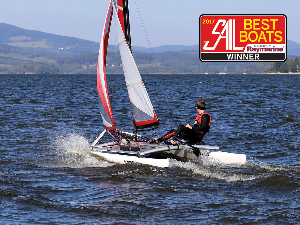 This is an exceptionally versatile and fun little boat from Austria that took our judges entirely by surprise. Weighing just 120lb all-up, this car-toppable beach-cat-cum-rowing-shell can be assembled in less than 10 minutes with no tools required. The largest parts, the thermo-molded hulls, weigh less than 40lb each.