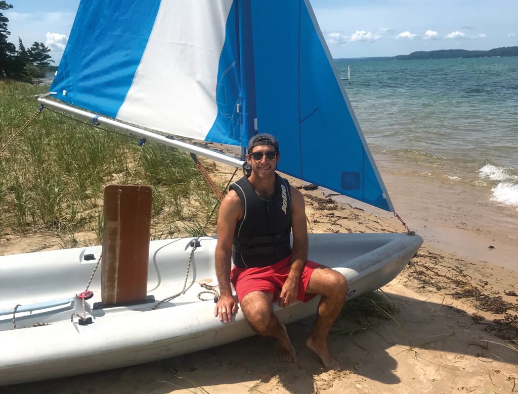 The breeze kicks up. The boat digs in, and I tighten my grip on the mainsheet. It’s overcast but warm. The slate-blue water around me is patterned with whitecaps. Ahead, the low, tumbling hills of Old Mission Peninsula, a 17-mile long finger of land separating the east and west arms of Grand Traverse Bay, spread out along the horizon. I have sailed in this corner of northern Michigan, where my grandparents built a house for themselves many years ago since I was an 8-year-old boy. The peninsula has always helped me keep my bearings. As I steer toward a distant tree, the 20-year-old 11ft Laser Pico I’m sailing picks up speed. I live in Los Angeles now. Today is the last day before I head home. It was a long drive getting here, but as I hike out, counteracting the force of the wind, I know it was worth it.