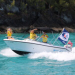 The “yellow shirts” escort the fleet to the start in Bermuda