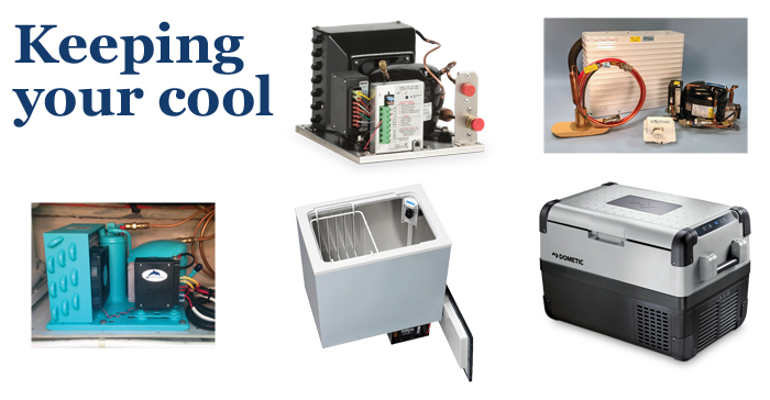 A proper marine fridge requires a compressor-driven cooling unit, as with a domestic fridge, where an inert gas is cycled through an evaporator plate inside the fridge, collecting heat that is then released via a condenser outside the fridge. (Once the heat is dispersed, the coolant is pumped back to the evaporator, after which the process is repeated.) Condensers are commonly air-cooled, so in a closed environment such as a boat it is vital to ensure it is adequately ventilated or it can lose up to 50 percent of its efficiency.