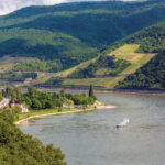 It wasn’t, however, just the commercial barges that made traveling upstream difficult. Whenever we moved to the middle of the river, the faster current slowed us down considerably. We therefore often had to run close to the wing dams near the banks. Sometimes we would also take the inside bank in the river’s wide bends, which not only shortened the distance traveled but took us where the current was slower as well. This slower current, however, often came at the price of shallower waters, posing yet another danger to Angel Louise’s progress. At times, we were forced to slow down to less than a knot. When we finally cleared the Lorelei Rocks and Rhine Gorge, we celebrated at Bingen, knowing that with the Rhine astern us we just might make it the whole distance across Europe and truly do the Great Loop.