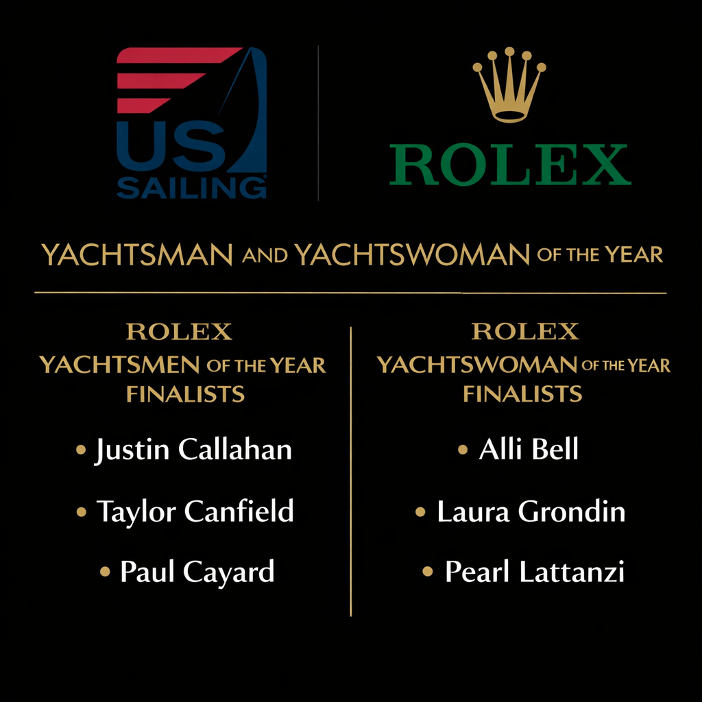 US Sailing has shared six names on the shortlist for the 2025 award: Alli Bell, Laura Grondin, Pearl Lattanzi, Justin Callahan, Taylor Canfield, and Paul Cayard.