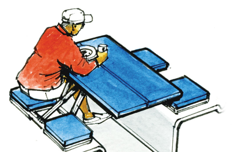 A.Dining al fresco is one of the joys of being afloat. Eating off a cockpit table is much more civilized than eating off a plate