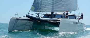 High-performance cruising catamarans are few and far between, perhaps because most cat buyers want to go cruising long-term and thus buy boats built for comfort rather than speed. High performance also means light weight, which in turn means a price premium, so boats like the Alibi 54 are aimed at a small but discerning and well-heeled audience. From its dreadnaught bows to its stepped transoms, this boat oozes character and style. The hulls are foam-cored with plenty of carbon fiber spread around high-load areas, and the rig is carbon-fiber too. Displacement in light trim is just 8.5 tons, so this boat should really get up and go. There are too many innovative features to list here, but hybrid electric drives are standard, and the boat can be ordered in any of four versions—Stripped-out, Greenie, Worldfaring and Tailormade, each of which is as it sounds. Importer Aeroyacht hopes to have one here in time for the fall boat shows. catalibi.fr