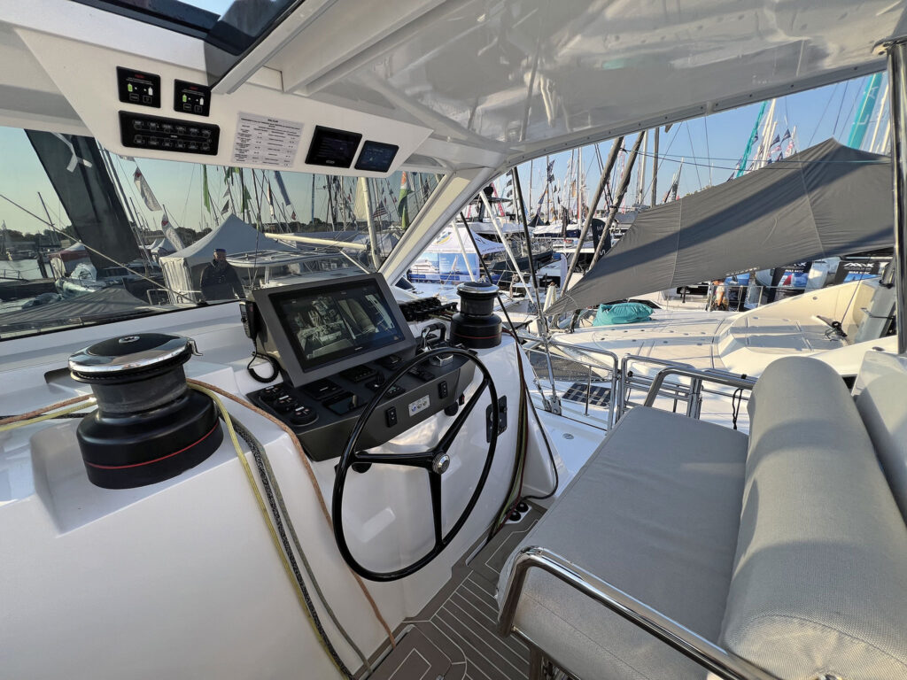 Under diesel power, we made good 7.1 knots at 2,200 rpm and 10.1 knots at 3,200 rpm. Range and speed stats under electric power would have to wait until the hybrid system was installed after the show. The Bay was relatively flat on test day so we didn’t experience the conditions needed to evaluate how the 3-foot, 5-inch bridgedeck clearance would do when pushing into a chop.