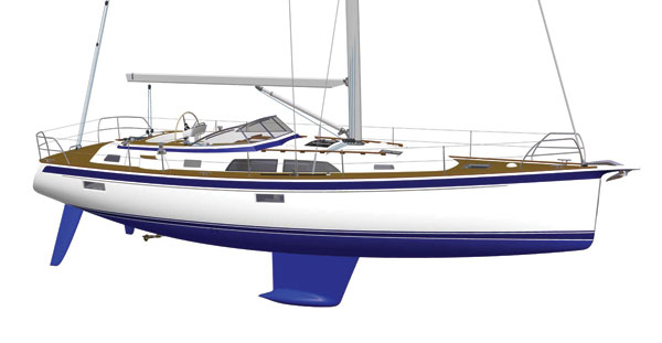 The most obvious of these is the twin-rudder configuration, a first for the Swedish builder. Also new is the molded bowsprit that holds the anchor and serves as a tack point for downwind sails. The jib furler is recessed under the deck, and all sail control lines run in galleries under the deck back to the cockpit. A self-tacking jib is optional.