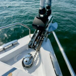 The Jefa steering, felt through optional composite Carbonautica wheels, was mostly neutral, and never required more than a couple fingertips to control. However, there was a small touch of weather helm in the puffs, which I really appreciated. It’s a pleasure when a boat can communicate with the helmsperson–even if they are just subtle hints. The system is also cleverly rigged, such that there is full redundancy. The port and starboard helms are rigged independently with their own integrated autopilots.