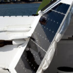 Nearly 400 square feet of solar panels help power the boat with clean energy, left.