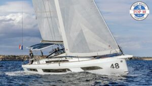 Photo courtesy of Hallberg-RassyThe Hallberg-Rassy 400 was deemed one of SAIL’s Top 10 Best Boats for 2023. Interestingly, it came to the U.S. ahead of its immediate predecessor, the center-cockpit 40C, which this year is making its U.S. debut. It’s the same handsome, powerful-looking hull as the 400, with twin rudders, plumb bow, and integral bowsprit for setting A-sails, as well as a three-spreader Seldén spar with in-mast furling. The well-sheltered cockpit has a single helm; electric winches and smart placement of controls make shorthanded setting, trimming, and reefing a piece of cake. Below, two spacious galley options are offered. The full-width owner’s cabin aft can be two berths—a single and a double with lounge seat between—or a wide centerline berth with settee to port and dressing table to starboard. The salon may have the traditional H-R comfy chairs to starboard or a straight settee that doubles as a sea berth. Opposite is the C-shaped dinette, and forward through a short passage is the V-berth. Throughout, this boat exhibits the attention to detail, stout construction, and joinery that are hallmarks of Hallberg-Rassy.