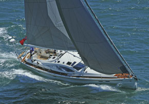 The boat comes standard with Seldén spars and Lewmar hardware. All working lines from the mast are led under the coachroof to a pair of companionway winches. The mid-boom mainsheet and single sheet for the 100 percent self-tacking jib (both double-ended) are led under the deck to power winches just forward of the twin steering pedestals and are easily controlled by the helmsman. A larger overlapping genoa, set on a separate stay just forward of the jib, sheets over the deck via conventional genoa tracks to winches set in the middle of the cockpit coamings beyond the reach of the helm. This second pair of winches can also be used to control an asymmetric spinnaker or gennaker set on a removable bowsprit.