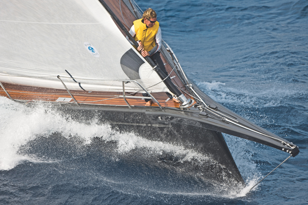 After reluctantly yielding the helm to another writer, I strolled the expansive decks, enjoying the warm teak under my bare feet. And what a stroll; the latest go-fast gear adorned DSK’s opulent deck and towering rig, and it was easy to imagine the boat in full-on racing trim with a huge kite hung from her masthead sheave, balanced out with a staysail and her huge main. Stir in 15 to 20 crewmembers hiking to weather, a massive grin on the helmsman’s face, and it’s easy to picture DSK at this year’s RORC Caribbean 600, where she earned line honors for the fastest fixed-keel monohull.