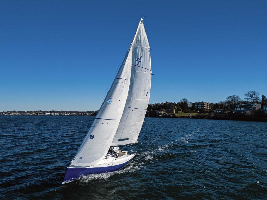 The J/7 would sit nicely on a mooring or in a slip, but there are plenty more options since it is easily trailerable and can be lifted by a single point hoist. Sailing on and off the dock, with ease, proved this design has few maneuverability limitations. And it can adapt to an extensive range of conditions. I expect this simple and responsive boat will create many wonderful memories, whether it is carrying a family exploring a high elevation lake or charging upwind through ocean chop and full of captivated students.