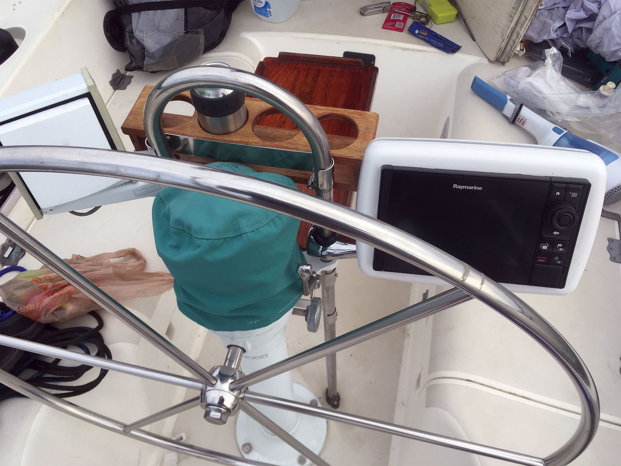 Our 1987 Pearson project boat came with an elderly but functioning Raymarine chartplotter, located belowdecks at the nav station. Since I usually sail solo or