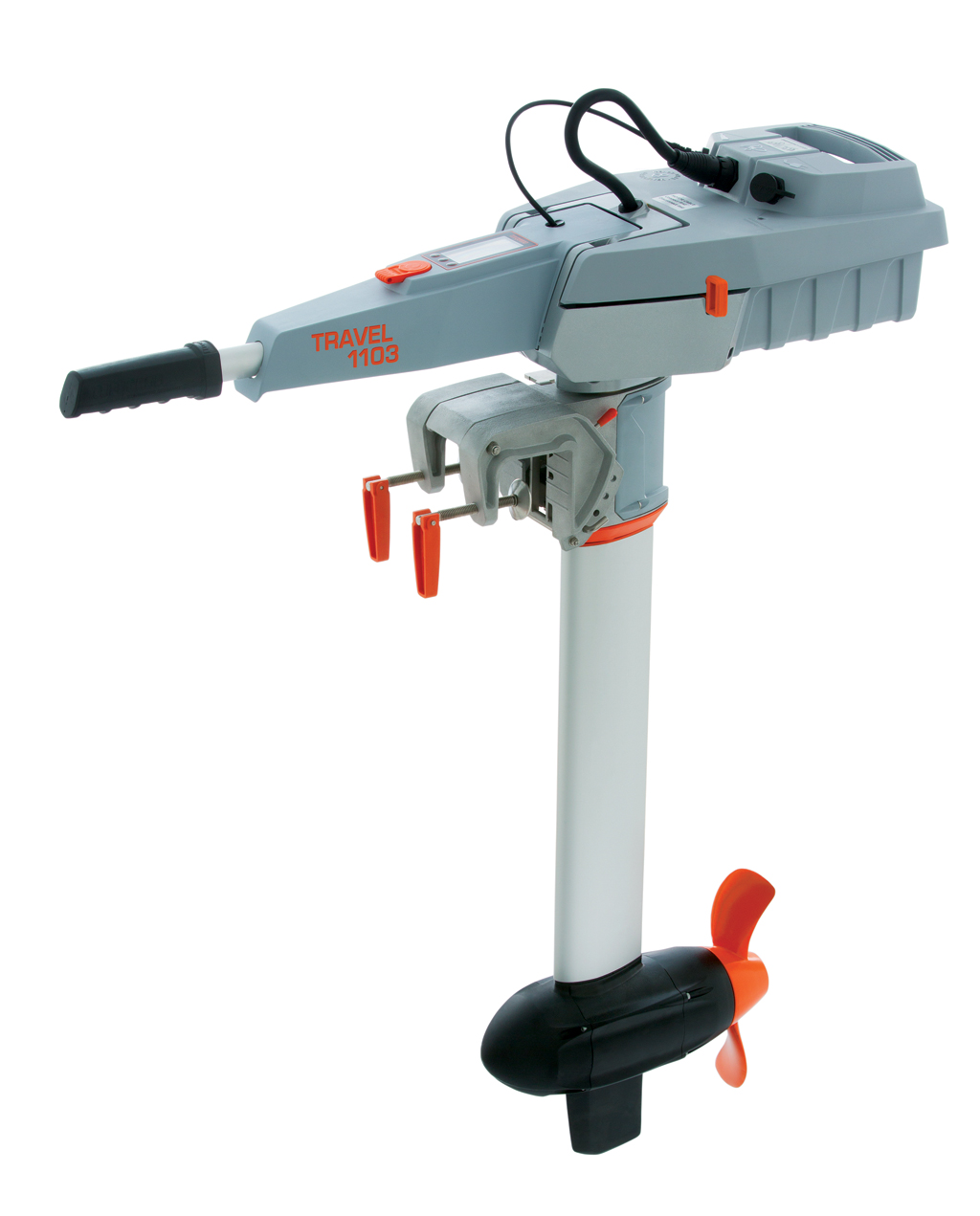 Electric Outboard According to Torqeedo, its recently introduced Travel 1103 C emissions-free, direct-drive 1,100W outboard is the quietest in its class, operating at just 33