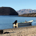 Anchoring in San Evaristo just before sundown, we put our Spanish-speaking shipmate, Monika, in the kayak and sent her ashore to ask if we could come for dinner at Lupe’s. It turned out Lupe was “out of town” (there are about five houses in San Evaristo), but we were welcome to come for a beer on the beach. We dinghied over wearing masks and found a cold Pacifico waiting on a table set up just for us. You can’t beat a happy hour like that!