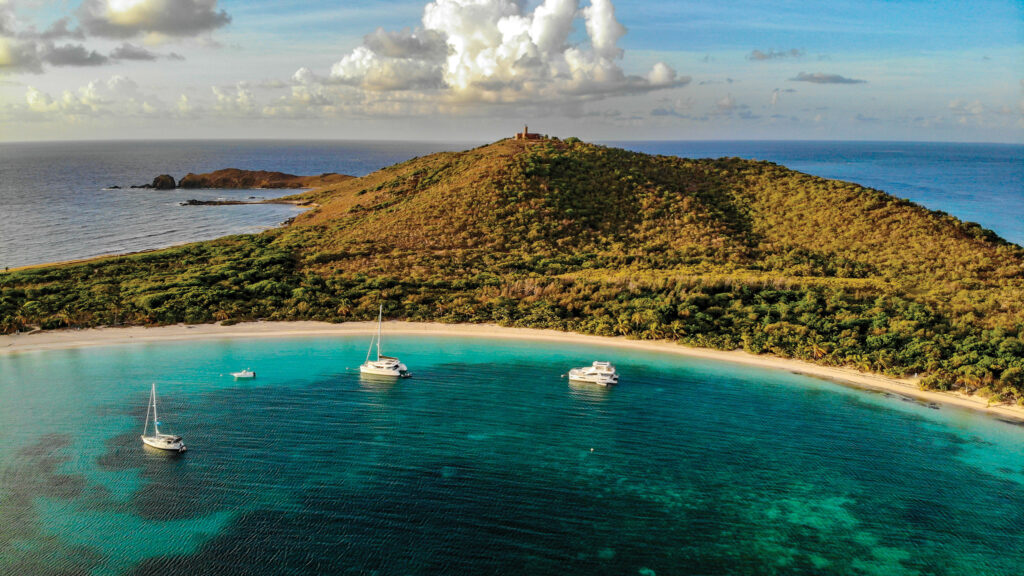 Jesse advises, “The highlight of the SVI is Culebra, as it’s absolutely breathtaking, filled with gorgeous landscapes and some of the clearest blue waters you will ever dive into. Not only are the beaches fantastic, but the food is amazing too—different restaurants filled with local fresh fish and some of the best banana daiquiris you will ever taste. Moreover, the locals are as friendly as can be. It’s best to do all your provisioning at the home base in Puerto Rico before you head to the other islands since there are fewer opportunities out there.”