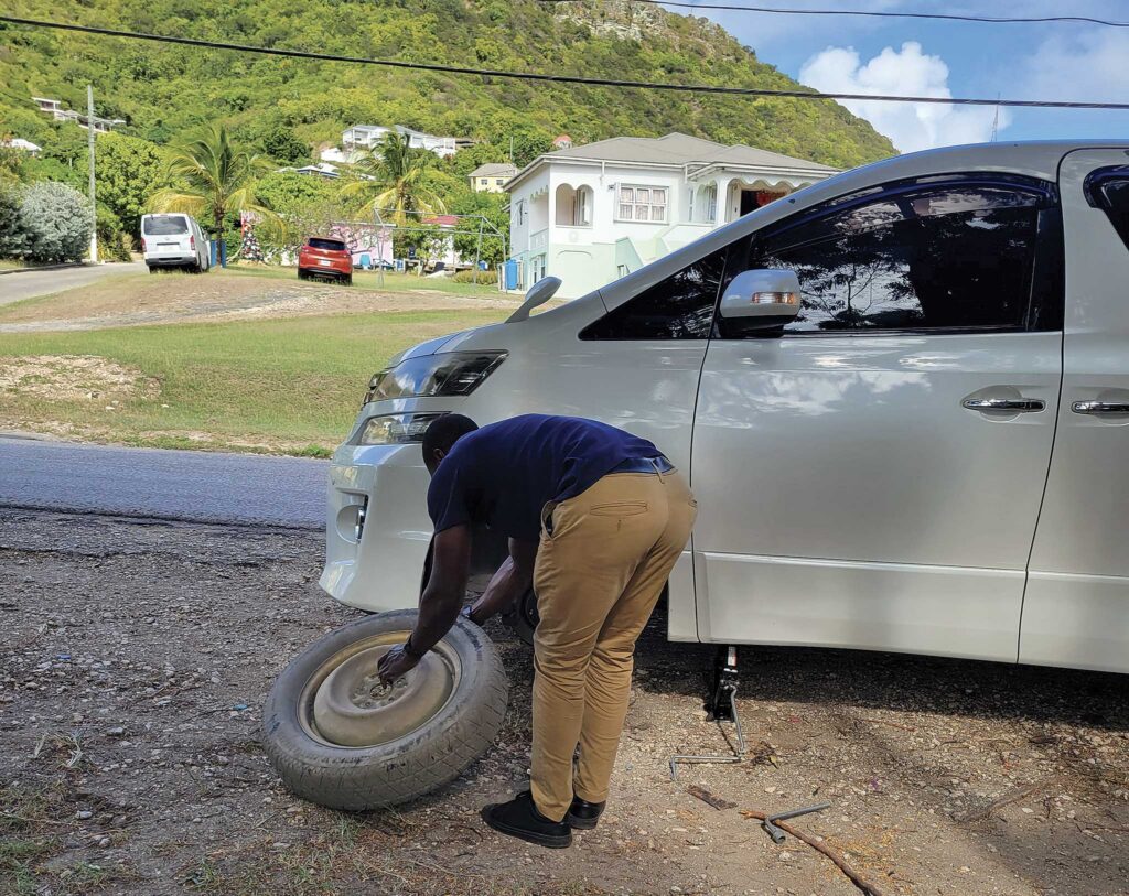 I found a sober cabbie for my ride back, but fate was feeling mischievous that day. In the rainforest, we suffered a flat tire. Thankfully, the spare was installed in no time flat, and I made it to Jolly Harbour just in time.