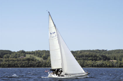 The cruising grounds out of Traverse City reach south to the Manitou Islands and north to the 14-island Beaver Archipelago. Some people go as far north as Mackinac Island, but this requires ideal winds, long passages, or a two-week vacation. There are, however, plenty of marinas and anchorages within the east and west arms of Grand Traverse Bay and farther north around Charlevoix and Little Traverse Bay for those interested in hugging the coast. Bay Breeze’s base, at the tip of Grand Traverse Bay’s west arm, is ideal for provisioning as well as convenient to the airport and bus station, but it’s almost 30 miles to the main body of Lake Michigan.