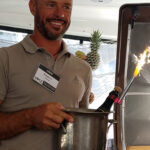 The US Virgin Islands charter yacht show featured yet another great opportunity to meet a couple who are bringing their expertise in yachting and cooking to the brand new 60-foot catamaran yacht Blue Pepper. The team features chef and certified Capt. Denise Melton and her husband Capt. Taylor Melton. The couple treated a group of yacht brokers not only to a gourmet lunch but helped celebrate the 50th birthday for Susan Restauri, who is from Annapolis, MD and is the charter sales manager for Waypoints. She was joined by other yacht brokers including Donna Romasco (seated) of Charter Yacht Solutions who is based in St. Thomas. The brokers all gave the lunch and its great team an enthusiastic thumbs up!