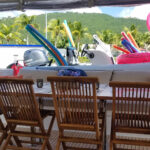 Capt. Brian Saupe is a retired police officer from Los Angeles and Colorado and used his retirement savings to purchase his 44’ catamaran Altitude Adjustment. He lost his first vessel in Hurricanes Irma and Maria and using his savings he bought his current yacht. He is a captain only operation which he feels keeps his rates lower and he wants to cater to the middle-income sailor or guests. Brian is seated at his nav station with a replica of the volleyball “Wilson” which was a gift from the police force in Colorado upon his retirement. Brian said “I always wanted to do this and I keep my rates low and keep things simple because this is part of my dream and my retirement. Some people die with their dreams and I didn’t want to do that.”