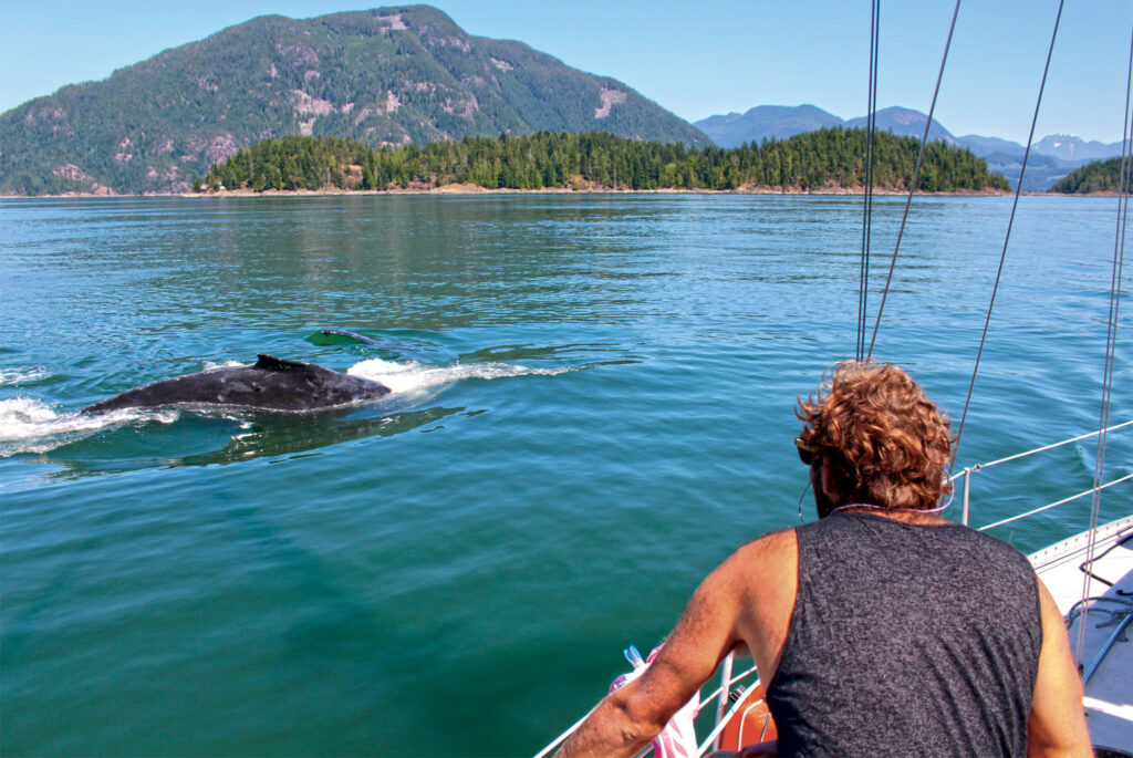 After that, our next spot was Cortes Island, famous in this part of the world for its oysters. Fortunately for us, there were no blooms of PSP (paralytic shellfish poisoning) causing algae, and we ate more oysters than I would have thought possible. It was here we also had our first close whale encounter. Multiple pods of humpbacks were cruising up and down the channel, and we took the dinghy out for a closer look. That night we fell asleep to the sound of them lazily feeding.