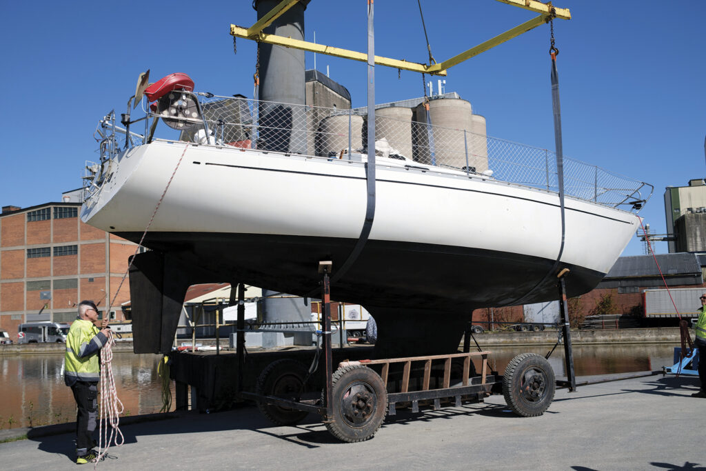 Like most sports and social activities in Sweden, the sailing scene here is based around club culture. Every small town with water access will have a local boating club, for sail and power alike, with dock facilities, a small boatyard, maybe a grill or two, often a sauna, usually trampolines and sandboxes for the kids (plus Optis of course), and most intriguingly, their own cranes, tractors, and volunteer work force. All of this is amazingly well-priced—our club in Enköping, a 40-minute train ride from Stockholm, costs about $60 per year for membership, plus a small fee if you rent an in-water slip. Each year Mia or I are expected to contribute about 18 hours of labor to help maintain the club’s facilities, launch and haul boats, work a night-watch shift, and other jobs.