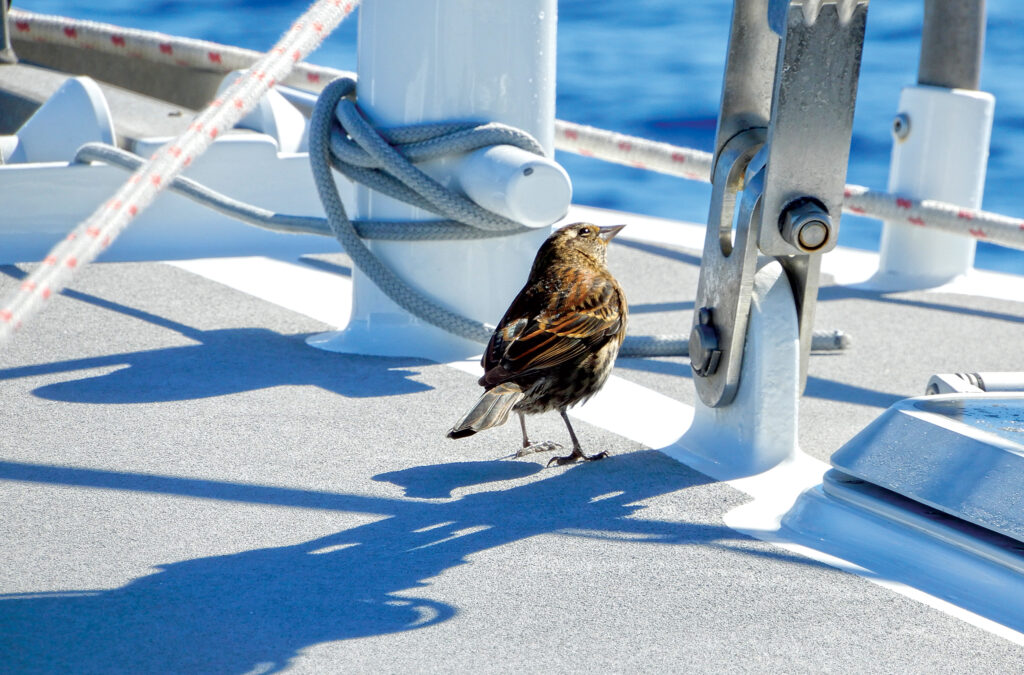 I remember one particularly intimate encounter with a sparrow that came aboard my old yawl, Crazy Horse, during a passage from the Azores to Spain. It circled for about an hour, hovering desperately, before finally landing in the cockpit. Unlike most such visitors, it soon took shelter under the dodger.