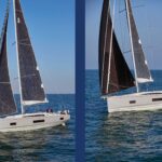 Under jib alone, this Beneteau Oceanis 46 is underpowered in light air (left); With a Code 0 deployed, though, the boat has plenty of drive (right)