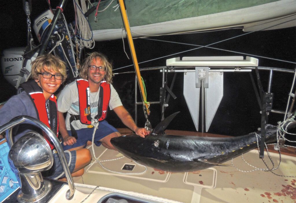 Mine is a fishing family. Whether we are running lines off the stern, spearfishing or casting from the boat, we’re always fishing. So, of course, we were fishing while we sailed as part of the 2015 Pacific Puddle Jump. Among our mini-group of boats, a competition had been arranged; the boat to catch the biggest fish would be entitled to a beer from each other boat in the group. My family was excited about this competition: so excited we kept our lines in the water day and night, during good and bad weather. It was through this determination that we achieved our biggest and best fish tale yet.