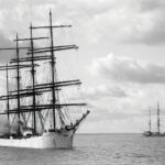 The square-riggers Archibald Russell (left) and Ponape await their next cargo of grain back in the day