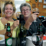 Jeannie and Carol, the radio operator on Kangaroo Island, are all smiles during dinner at The Shed