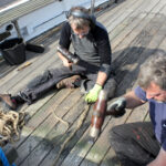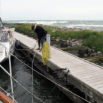 I went below for half an hour to sleep off the large shot of aquavit that had washed down my lunch and had just dozed off when a hammering on the hull brought me up on deck in short order. There I saw a large, scruffy Hallberg Rassy had come alongside and a man knocking on my hatch who I’d last seen under a pub table in the Republic of Ireland nearly 10 years earlier. Since that memorable meeting, Yanne and his shipmate, Carl, had circumnavigated in the Rassy and written a lively book about voyaging on the wild side. Don’t miss Brave or Stupid if you ever find that life is getting you down. In the blurb Yanne is described as “on his third marriage and his third career, and he isn’t even a rock star.” Like the local bakers, Yanne had no pastries, but he did have a locker full of wine. The night that followed was not a quiet one.