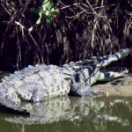 From Isla Isabel, we crossed back to the mainland to San Blas, where we anchored in Bahia Matanchen, a large bay a few miles east of the town. (And where we had been advised to drop the pick at least a mile from the shore to avoid the sand flies, or jejenes as they are called locally.) Crossing the Tovara River on way ashore to reach the town we spotted a large crocodile. No need to take the tour at the crocodile sanctuary now!