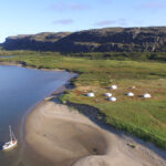 With 20 knots of wind on the beam, two reefs in the mainsail and the small jib up, we thoroughly enjoyed the 43-mile sail from Umiujaq to the mouth of the Little Whale River, where we arrived as planned at high water. As we made our way south we were captivated by the sublime beauty of the area, as the rugged coastline we sailed along was almost magically transformed itself into a surreal assemblage of fine sandy beaches and bare mountains, all softened in pastel hues.