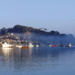A colony of sea otters lives in Morro Bay at the foot of the Rock close to the anchorage. Throughout the 19th-century sea otters were hunted almost to extinction in the Pacific Northwest, but a small colony of 30 survived at San Luis Obispo, and the group in Morro Bay are their descendants. It was great fun to watch them going about their business in the still water of the bay, their bodies sleek and sinuous as they dive then surface clutching a clam and a rock. Their furry, whiskered faces seem to concentrate as they hit the clam with the rock to open it, then eat it and do it all over again.