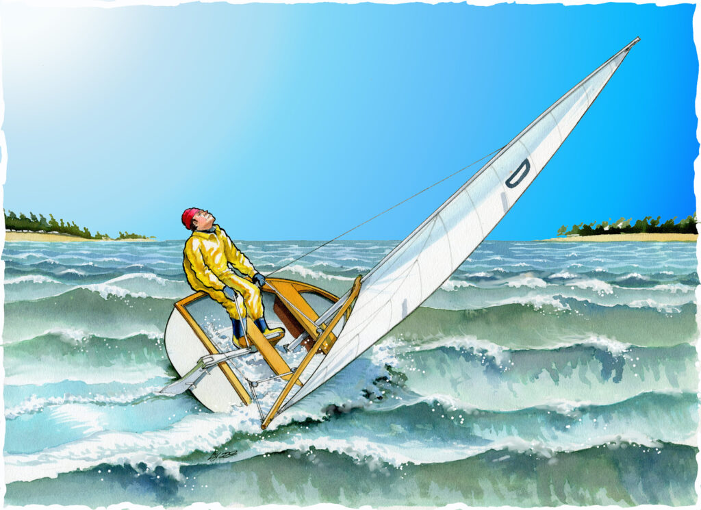 After a dozen years of sailing in the tropics, I had just finished my first winter up north again on Long Island, New York, in what felt like forever. Except for a few hours in an antique iceboat on Long Island’s frozen eastern Great South Bay, I hadn’t been sailing in months. Then came a sunny, sparkling clear day with a brisk northwesterly breeze, following a frontal passage in the middle of March. I decided a short sail in our 9ft Dyer dinghy would be just what I needed.