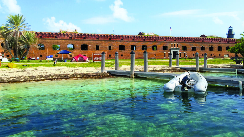 Services at the Dry Tortugas are nonexistent, so be sure your water tanks, fuel tanks and larder are full. Don’t be afraid to over-provision in case your return is delayed by unexpected weather. There is no VHF, cell or internet service, but rangers post NOAA weather info daily at the visitor center. The main island, Garden Key, and the more remote Loggerhead Key have rangers in-residence. You won’t need to obtain a visitor permit in advance, simply dinghy ashore when you arrive to check in for your park pass and obtain QR-scan brochures on the park’s rules and activities.