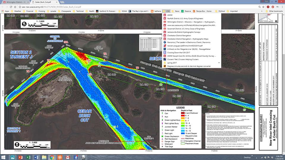In the picture attached we see the December 2018 USACE Wilmington District survey of the New River Inlet Crossing, with waypoints too.