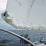 Shows block arrangement on free flying main sail