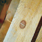 The build team is also employing historic methods on the hull, using treenails, or “trunnels,” for example, in lieu of metal fasteners wherever possible. This process involves fitting thick wooden pegs into pre-drilled holes in the hull and then driving a thin wedge into the pegs, thus broadening their circumference so they won’t slip free. Because the fasteners are wood rather than metal, they don’t rot out the surrounding planking and become more secure over time as they absorb water and expand.