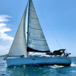 Soon afterward, I gingerly made my way up to the bow to clear the jib sheet. Thinking it was secure, I returned to the cockpit and unfurled the jib. Next thing I knew, I was sailing solo with both sails flying. Thoughts of future passages to St. Vincent and the Grenadines danced through my head. The cockpit was mine and mine alone. I moved about freely without ever having to say anything like, “Pardon me, I need to pull on that blue rope over there.” I played musical chairs, I sat to port, then to starboard, then to port again. I shot and texted some more videos. I went below to grab a beer. Having waited over a year for this day, I shouted to the skies again for the sheer joy of being alone again at sea.