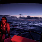 We left San Diego on a perfect day as an area of high-pressure forecast provided us with 20-knot north-westerlies as soon as we got clear of calms in the lee of the Channel Islands and Point Conception. As we headed offshore that night we experienced a rollicking beam reach to the south and west, which proved a challenge as the motion was fairly strong, and none of us had our “sea legs” yet. At one point a wave not only made its way into the cockpit but all the way onto the chart table below. Because falling is the most common cause of injury at sea, especially at the beginning of a voyage, I set up some additional makeshift handholds and tethering points. Nonetheless, we all still collected our share of bruises, some fairly painful.