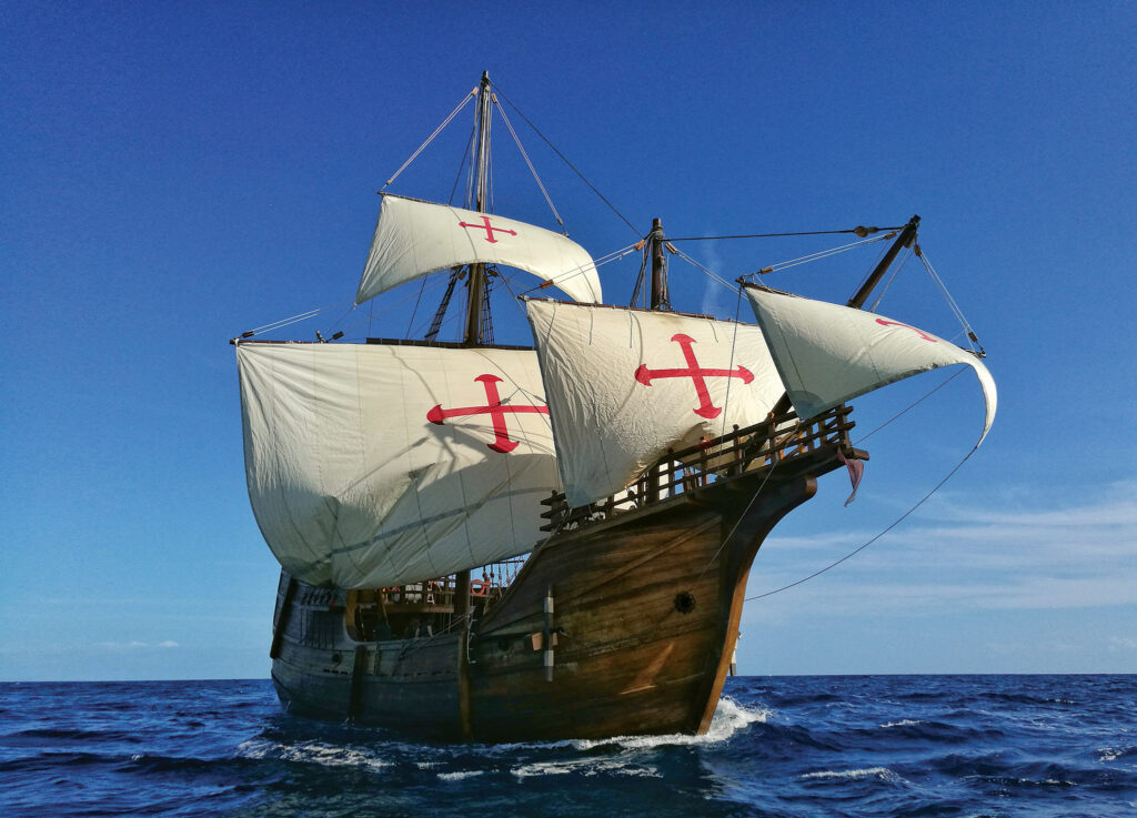 But a version of the Santa María is sailing again. In 2018, the Fundación Nao Victoria in Huelva, Spain, launched a 200-ton, full-scale replica of the Santa María, which has spent the last few years touring North and Central America and the Caribbean, acting as a floating museum and goodwill ambassador. During 12 months of construction, the shipwrights, carpenters, ropemakers, and mechanics were faithful to the design and dimensions of the original wherever possible—a painstakingly difficult task, as the Santa María was never found and its plans lost to history.