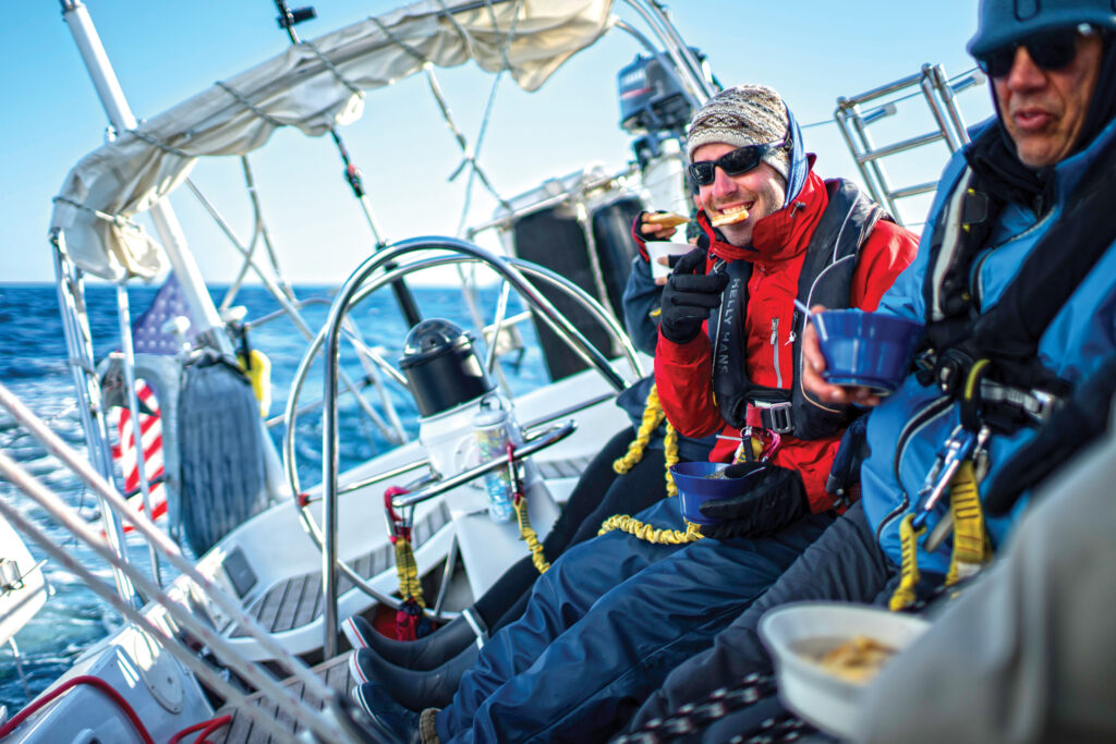 Meanwhile, the bottom line is simple: the safest practice is to stay on the boat in the first place. A harness with a short tether may help, as will a centerline jackline, but they are not necessarily guaranteed.