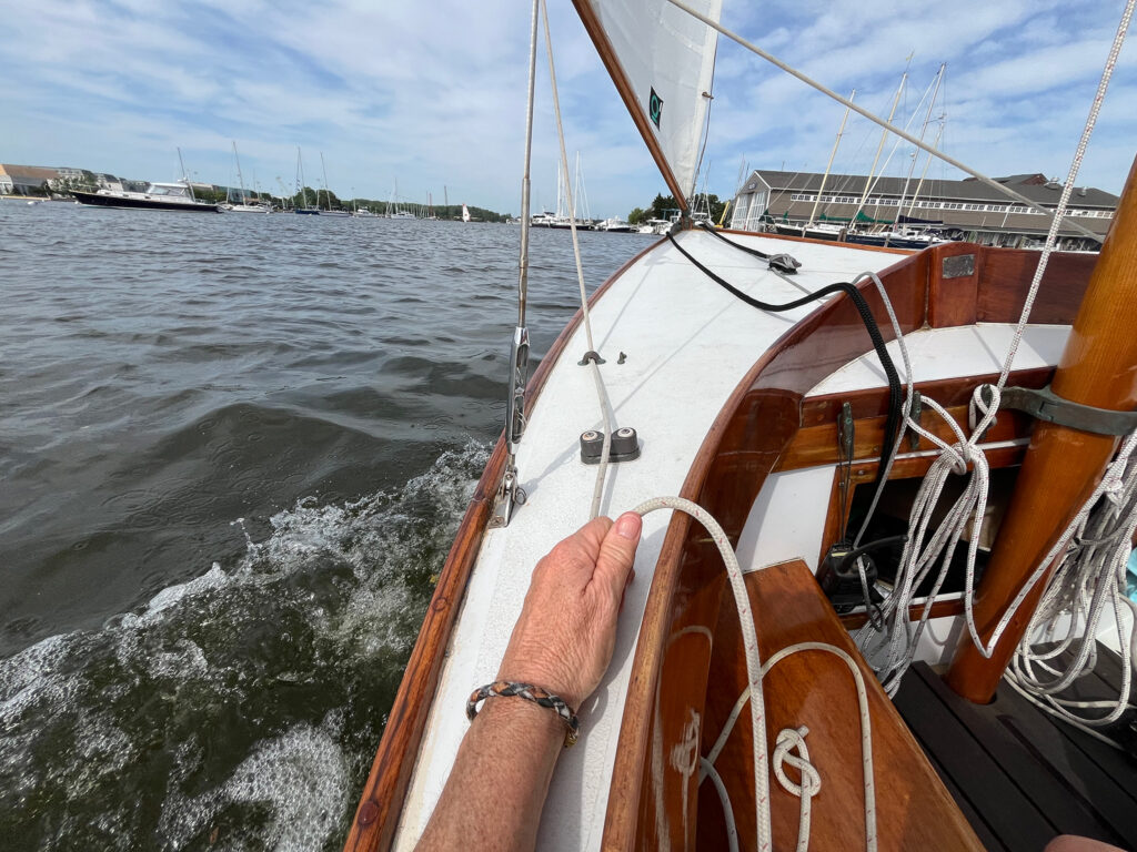 Maneuvering under sail is a combination of steering and sail trim. How to maintain a steady course and achieve the best boat balance can be difficult to understand with so many interconnected variables: wind strength, sea state, boat quirks, heel angle. Small boats make it easier to figure out the cause and effect of each adjustment.