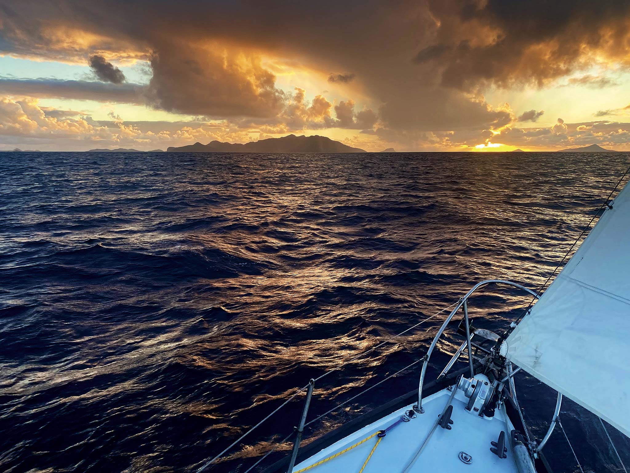 My feet found their way into my boots, I slung a lifejacket over my shoulder and emerged into bright sunlight. Shielding the sun with the main, I could see the spinnaker was wrapped twice around the furled headsail and was attempting another twist. The wind had dropped, and the boat had sailed too deep for only a moment, allowing the chute to get into this mischief. This needed to be cleaned up, and quickly, if we were to avoid a trip aloft in sloppy seas.