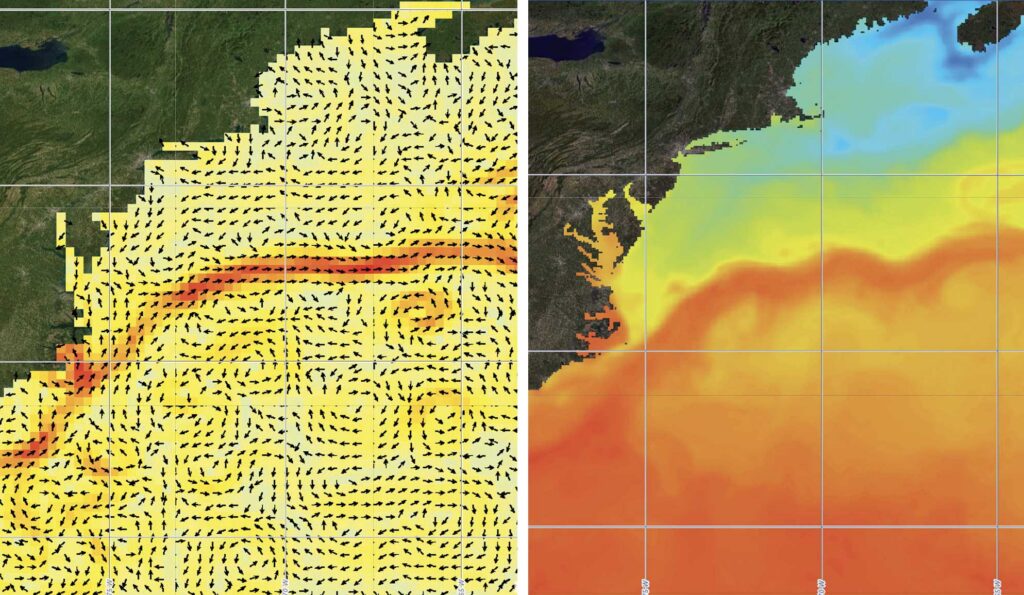 The Gulf Stream’s local patterns are constantly evolving; every crossing or ride will be different. Our best tools for predicting the flow are based on extrapolating observations. Satellites capture water surface temperatures and altimetry.