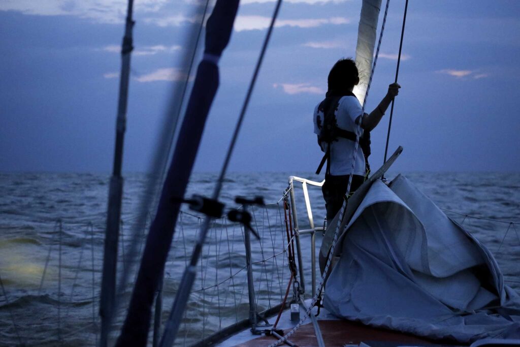 This pursuit of adventure also requires us to remain curious. Channel that to learn more about staying safe in a challenging environment: from navigation light patterns to tuning up radio communications, there is always more knowledge to take in. This carries to our time on board too. Wondering what else is moving around in the dark is essential to keeping a sharp lookout, and may lead to fascinating discoveries of sea life, like whales or dolphins holding course with you (note you will almost always hear them before you see them at night).