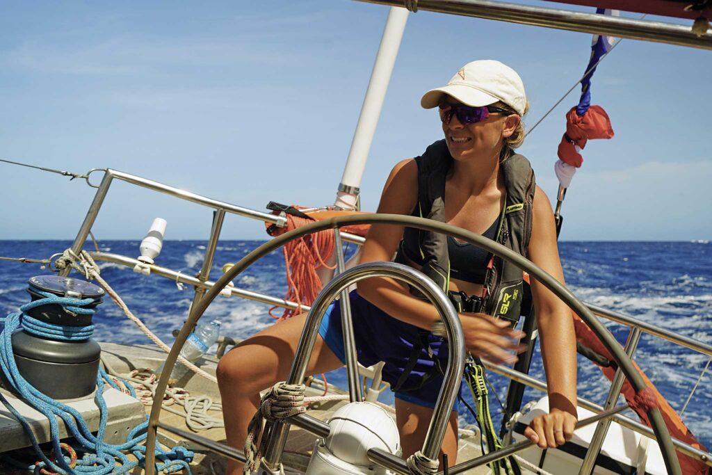 “Do you believe in God?” Capucine asks. It’s 2:30 a.m., and Coline is at the helm. It’s a long, dark night, and the waves are coming on strong from behind and occasionally from abeam, splashing up on deck when they get the best of our intrepid driver. There’s something soothingly, maddeningly cyclical about life out here.