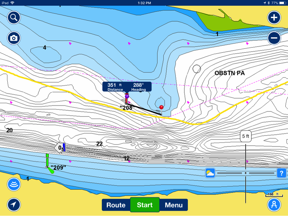 Note: We use Navionics Sonar Charts in parallel with our chart plotter for navigating the ICW. They are another tool to have at your navigation station, they are pretty accurate, and much more detailed and accurate bathymetry than NOAA or Garmin charts, but they are not perfect and must be used with caution. If you use these charts you MUST update them every few days for the area you are transiting. Navionics releases new information all the time and an old Navionics Sonar Chart is an old chart. Set your depth shading at 6 feet to match the NOAA 6-foot contour. It makes it easier to transition back and forth between different cartography of NOAA and Navionics.
